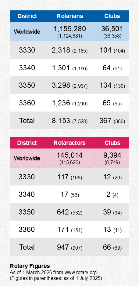 วันที่เต็มไปด้วยรอยยิ้มของเด็ก ๆ, สมาชิกโรตารีร่วมกันสร้างประวัติศาสตร์, มอบของขวัญแห่งโรตารี, คนทำจริงที่อยู่ทั่วโลก, สนเทศโรตารี: ภาพที่ใช่...สร้างความน่าเชื่อถือให้โรตารี, บทสรุปที่ผู้นำโรตารีมาแลกเปลี่ยนเรียนรู้กันในการสัมมนา RLLD ที่ศูนย์โรตารีในประเทศไทย, นำเรื่องราวจาก Genting มาเลเซีย เมื่อเดือนก่อนมาเล่า เพื่อนำทางสู่ 2026 Rotary Institute ที่พัทยา, ภาค 3330: จัดตั้งทีม Save หาดใหญ่ ช่วยเหลือผู้ประสบภัยทันทีหลังน้ำลด จากสายธารน้ำใจจากทั่วประเทศ, ภาค 3340: พิธีฉลองสารตราตั้งสโมสรโรตารีอู่ตะเภา อินเตอร์เนชั่นแนล, ภาค 3350: กีฬาครอบครัวโรตารี, ภาค 3350: โครงการ Light the World: Giving Machine, ภาค 3360: เมื่อโรตารีสื่อสารผ่านภาพ: เล่าเรื่องโรตารีให้โลกเห็นผ่านรางวัลภาพลักษณ์